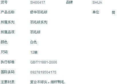 產(chǎn)品名稱:羽球 產(chǎn)品型號(hào):SH-66417