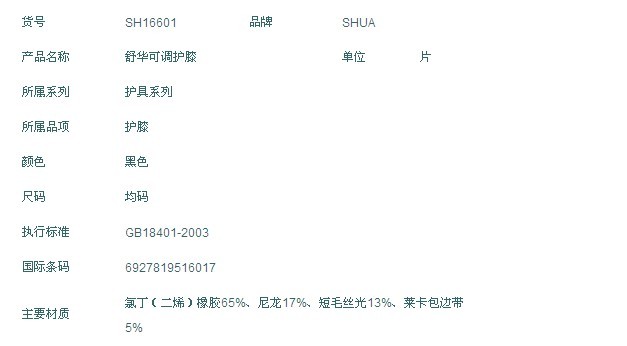 產(chǎn)品名稱:護具 產(chǎn)品型號:SH-16601